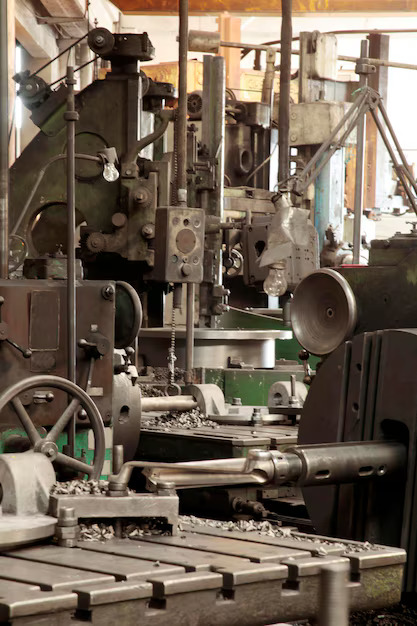 A machining facility is equipped with various machines for precision cutting, shaping, and finishing of materials.